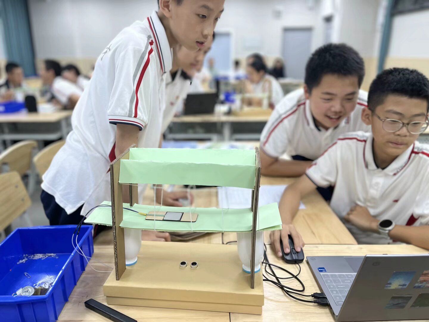 同学们搭建的“桥梁”连接上了传感器
