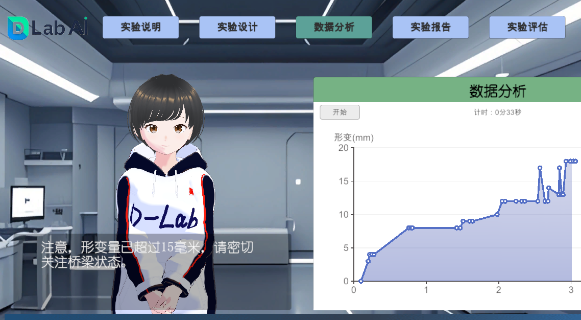 记者在课堂上看到,如今这样的遗憾已不复存在。实验过程中,AI系统全程联动传感器,实时捕捉桥梁模型的受力大小、形变量等数据,同步完成动态分析,并将抽象的力学变化转化为直观的数值和曲线,呈现在屏幕上,让学生能直观看到模型结构的变化过程。当模型受力接近承载极限时,系统便会发出预警,提醒学生停止操作,既保住了学生的劳动成果,也为后续的模型优化、数据分析保留了完整载体,让探究能持续推进。