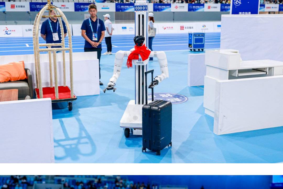 2025世界人形机器人运动会,人形机器人模拟在酒店大堂的应用场景。图据工信部赛迪研究院